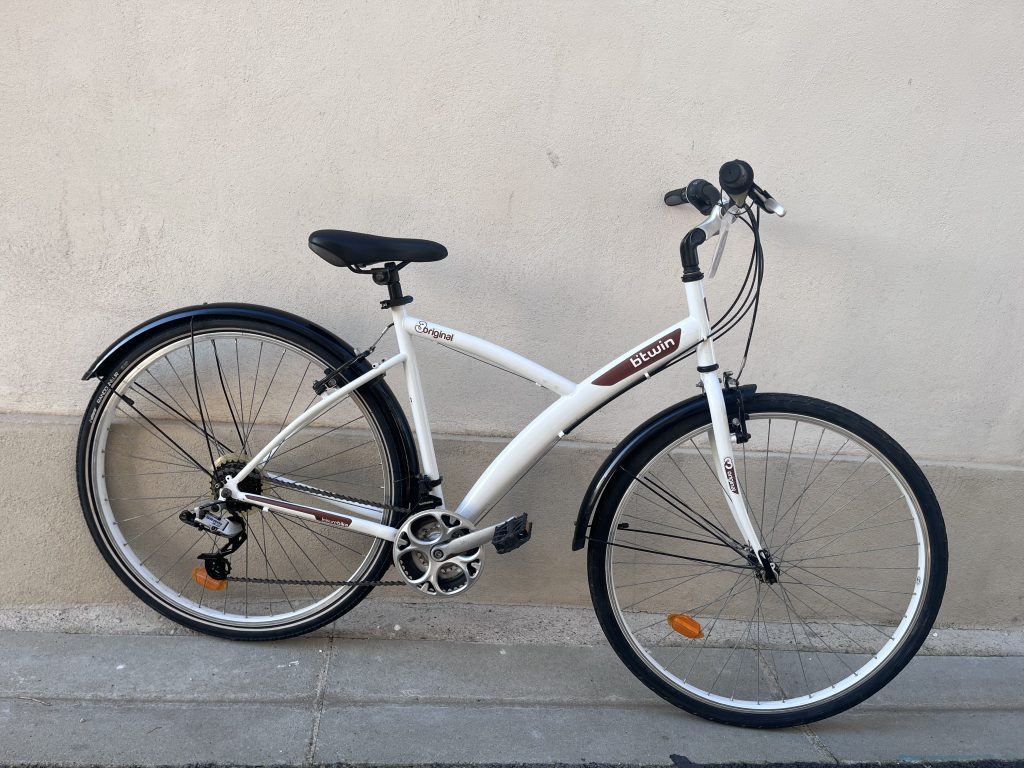 B’TWIN original 3 blanc, 21 vitesses, garde boue, guidon réglable, taille m/l 150 euros